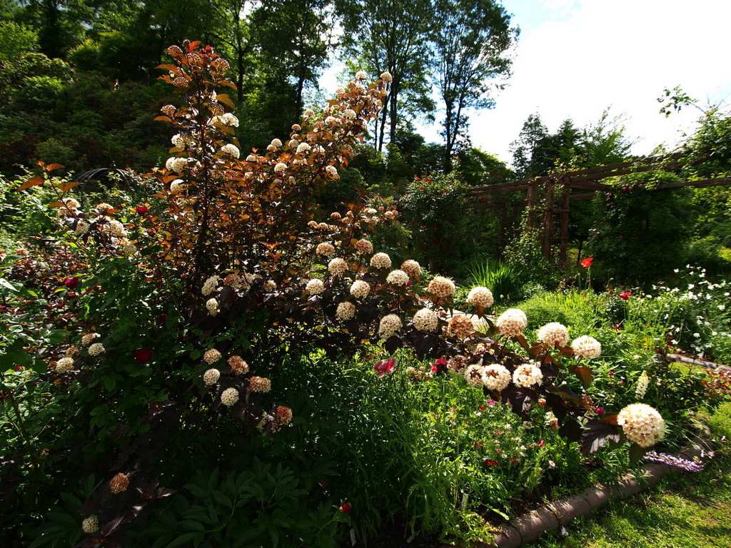 宮城県仙台市 泉ボタニカルガーデンにて。 西洋シモツケ「ディアブロ」の大株。 私の庭のディアブロも来年は、せめてこの半分で良いから複数の花を付けて欲しい(^_^;)