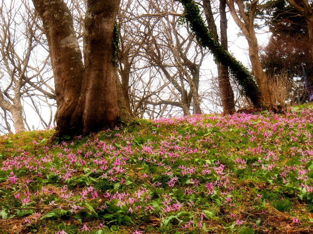 da さん(^^) この写真のはほんの一部のものでして、実際はこの数十倍の広さに約1万株のカタクリが有るそうです(^^) 元々は自生して無かったらしいですが、この土地の持ち主(お寺の境内なのです)が数十年以上の歳月を掛けてこの風景を作り出しました(^^)