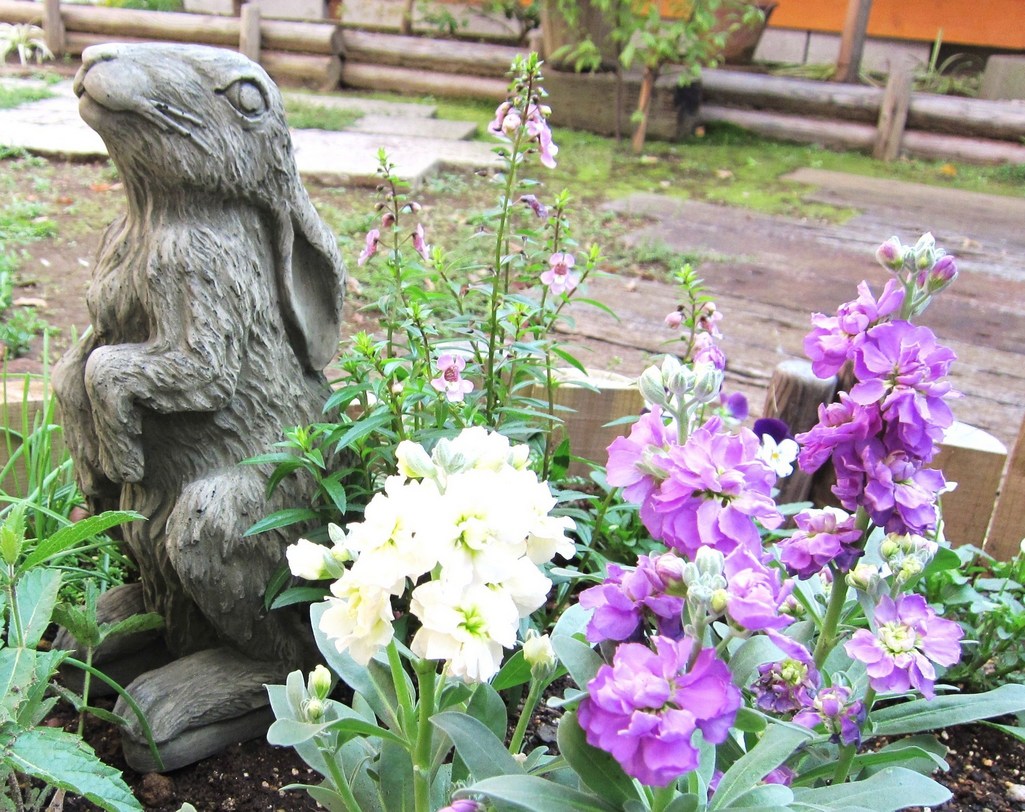 うさぎさんが居るとお庭も楽しくなりますね。ストックは可愛いですよね、私も大好きです。