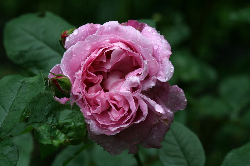 こちらは庭植えのタワーブリッジの一番花。雨上がりの朝の一枚です。