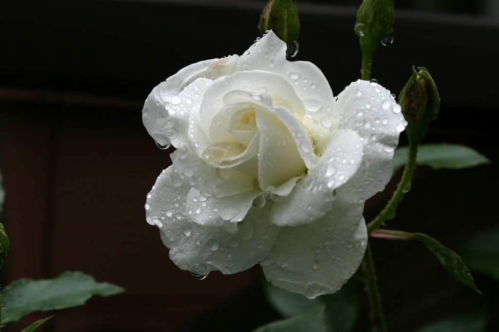 台風の後咲き始めたアイスバーグです。雨露をまとった姿はとってもきれいです。