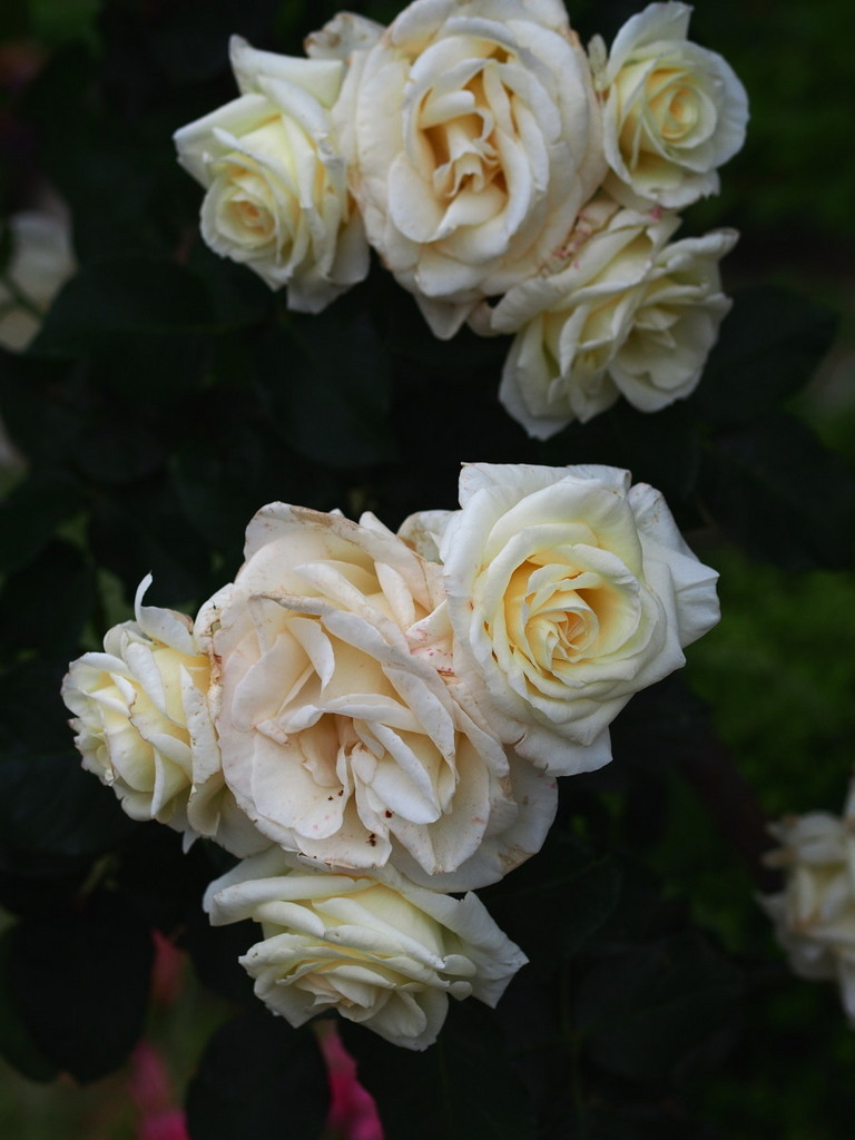 薔薇 シュネーバルツァー。 ツル薔薇ですが非常に枝が固く、誘引選定がちょっと大変… それでも大輪の剣弁咲きの花が房咲きになる様子は圧巻です(^^)
