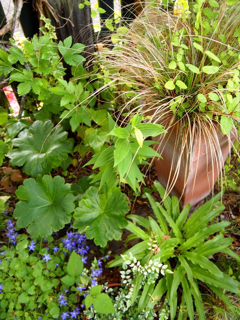 大きなテラコッタに「スティパ」。葉ものでは、「ダルメア」、