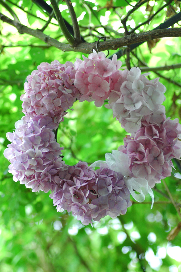 アジサイでのリースも可愛いですね~!綺麗な色で、ステキです。