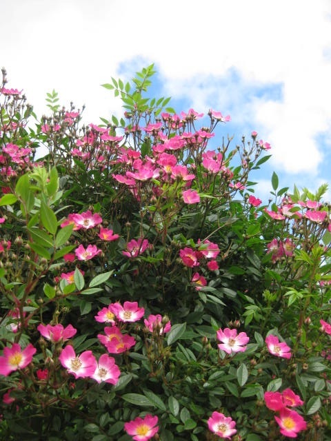 すごく元気そうな薔薇ですね!蕾もいっぱい!!ブルーの空にとてもよく似合えっていますね!