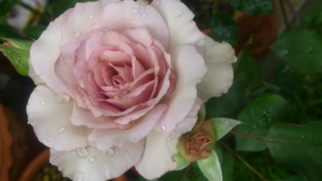 雨に当たって、黒点病で下の葉は落ちてしまったけどさいてくれてます(^-^)