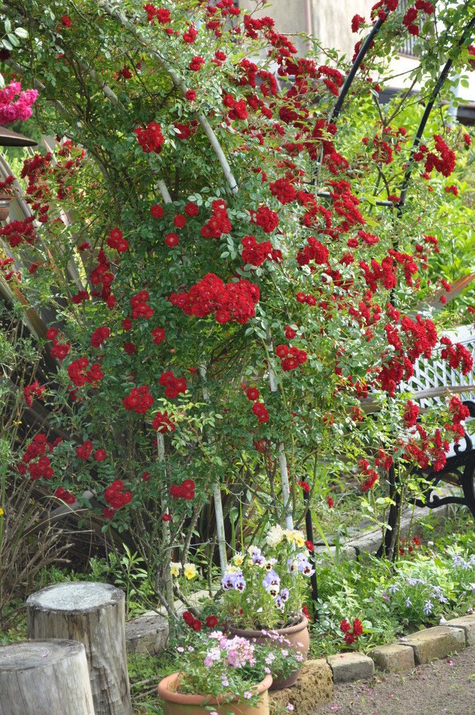 まさに「真紅」なのですね。赤いバラでもその色はさまざまですが、気持ちの良いくらいの鮮烈な発色です。