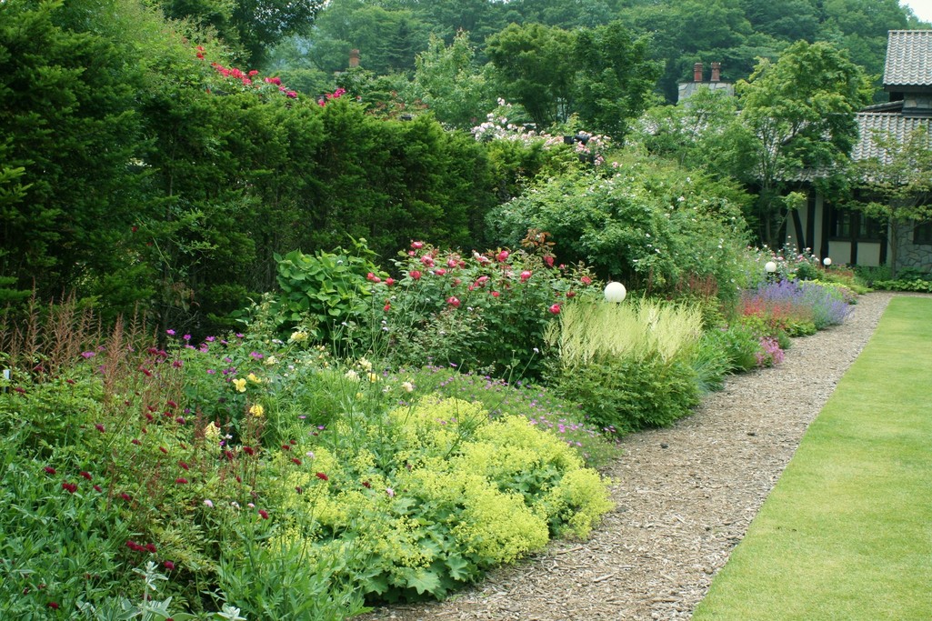 これはレイクガーデン入口横のホテルの前庭。イングリッシュガーデンになっていますが、年々株が大きくなって見ごたえがあります。