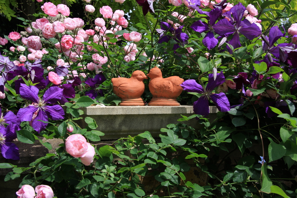 バラとクレマチスに囲まれて、まさに夢の世界ですね~!! ローブリッター、まだまだキレイですネ(*^^*)