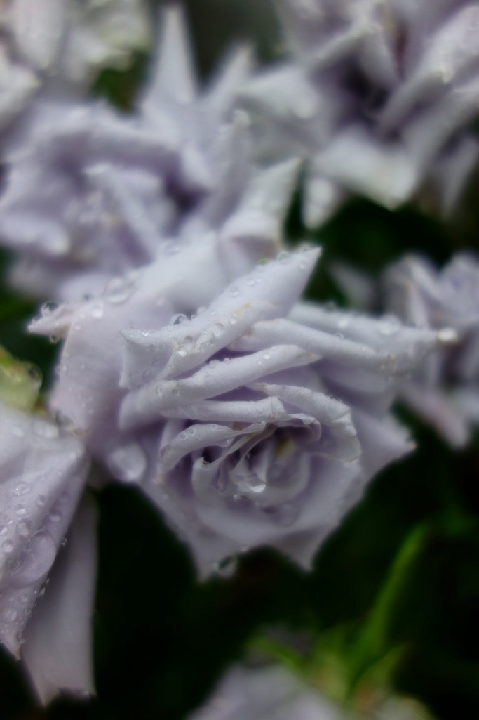 コンデジなのですか!一眼レフのような精密に写っていますね。しずくまでこぼれるような質感で素晴らしいです。紫・青系のバラは神秘的ですね。