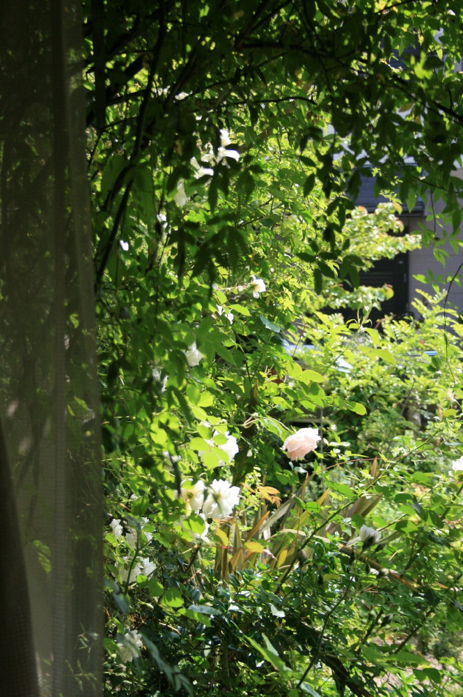 室内の暗さが外の美しさを際立たせてますね、庭が輝いていますね。