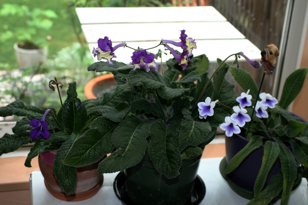 サンルームで冬越しをしたストレプトカーパス3種。やっと花が咲きました。