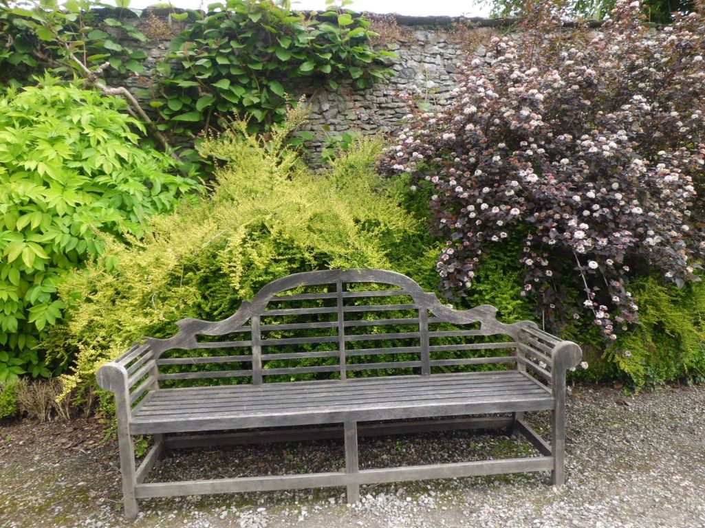 見事な銅葉のコデマリですね。ベンチがさらに素敵に見えますね^^