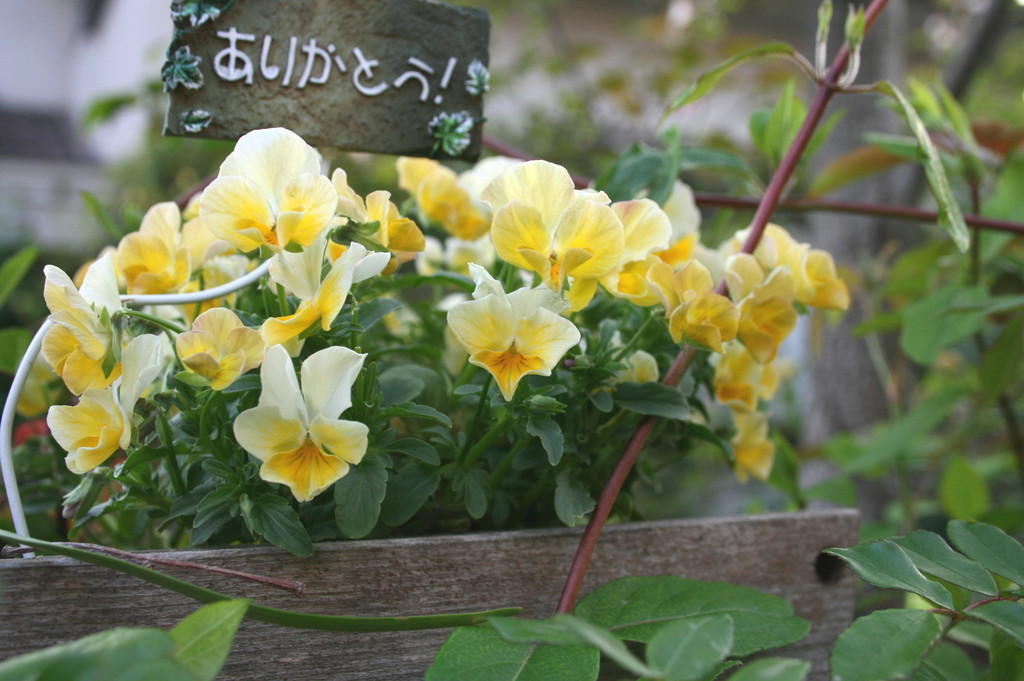 シンプルで優しい色合いの元気が出る黄色のビオラとピックの「ありがとう」ってクマさんの人柄溢れてますね。大いに自己満足して良いショットですよ~☆3つ