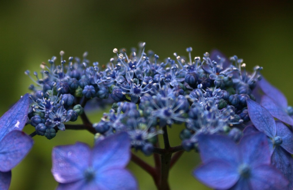 山アジサイの花を真横から見たところです。