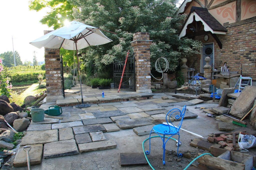 門の真ん中にぽつんと置かれた清涼飲料水が暑さを物語ってますね。真夏に重い石をならべる作業は大変ですよね・・・無理をなさらないでくださいね(*^^*)