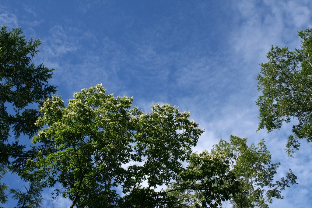 これは梅雨明け宣言の出た17日の我が家の庭から見た空。