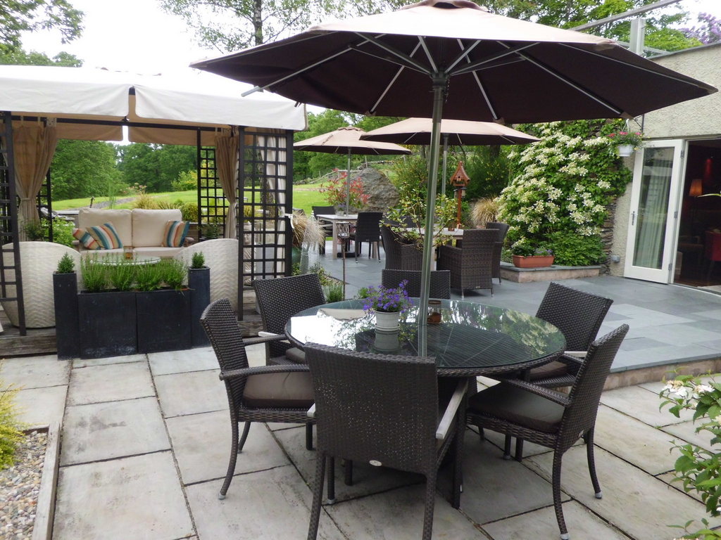 テラスのガーデン用のソファーや椅子が洒落ています。参考になります。