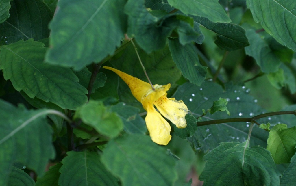 これはキツリフネ。こちらではとってもポピュラーなツリフネソウ。鳳仙花の仲間でピンクもあります。