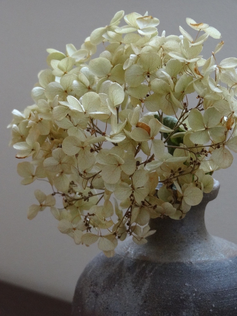 洋風なイメージのアナベルですが、枯れ途中は和もいいかな♪