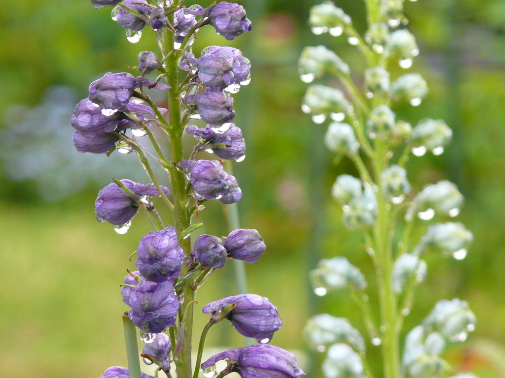 蕾が綺麗に洗われて気持ち良さそうですね。紫と白の2本の花茎が並んで、綺麗ですね。いつもい、優しいコメント、ありがとう^^
