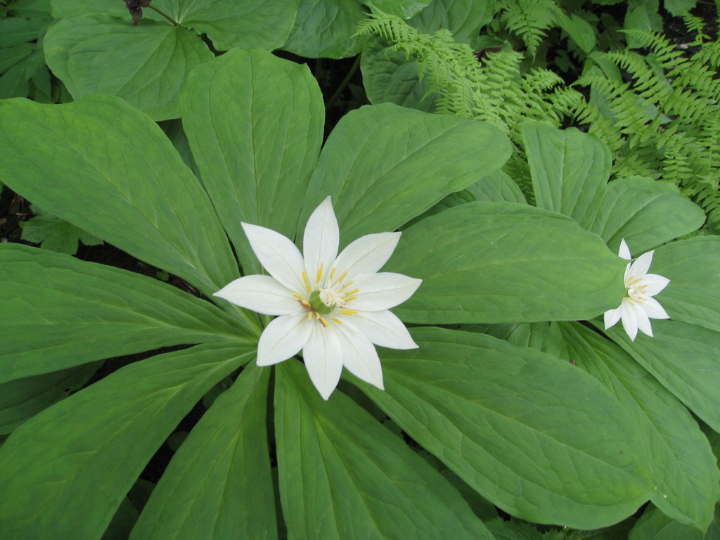 高山植物 キヌガサソウです。 このお花は、花びらの枚数と葉っぱの枚数が同じになるそうです。