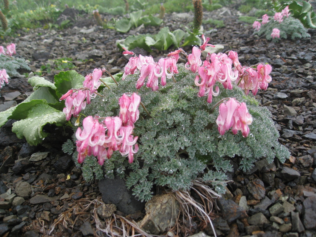 コマクサが露に濡れ美しいですね。自然に勝る美はないですね。