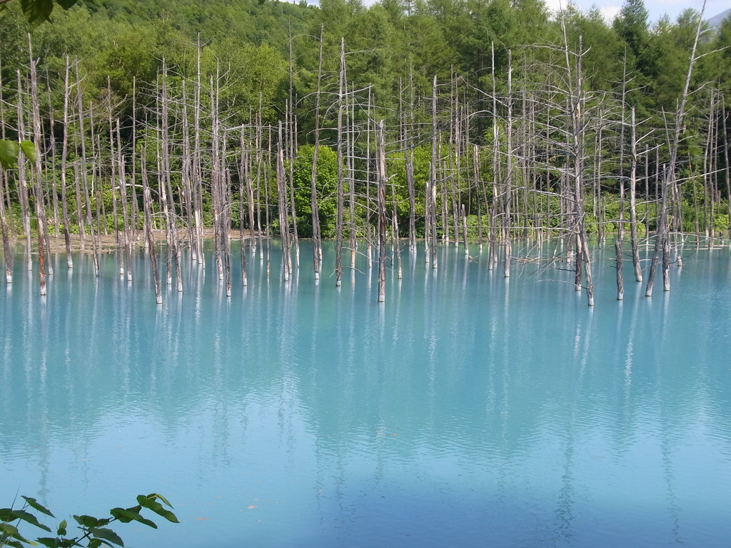 青い沼が神秘的ですね。