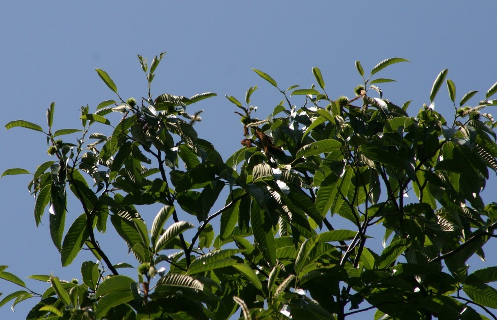 庭の栗の木の雄蕊の落下が一段落してきましたが、青空に包まれた枝先を見ると小さなイガがたくさんついていました。秋には大きくなって美味しい山栗がたくさん収穫できそうです。