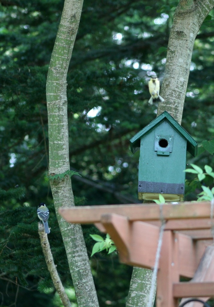 二羽目の雛が巣箱から飛び出した瞬間です。なんだか大の字状態でぎこちないですね。