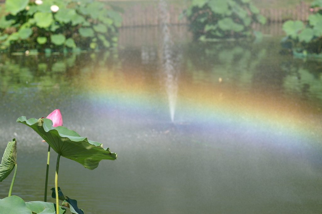 ナイスショットですね!! 蓮の池の上に浮かぶ虹、なんてきれいなんでしょう!いいもの見させていただきました~(*^^*)