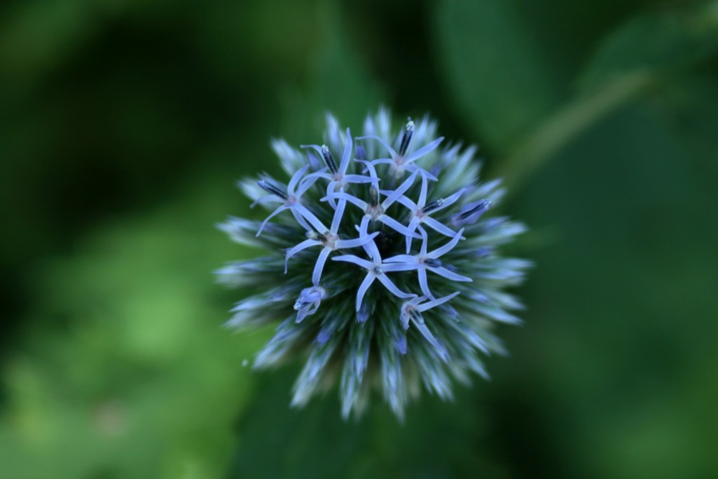 夜空でぱっと広がる青い打ち上げ花火のようですね。アザミの一種なのですね?