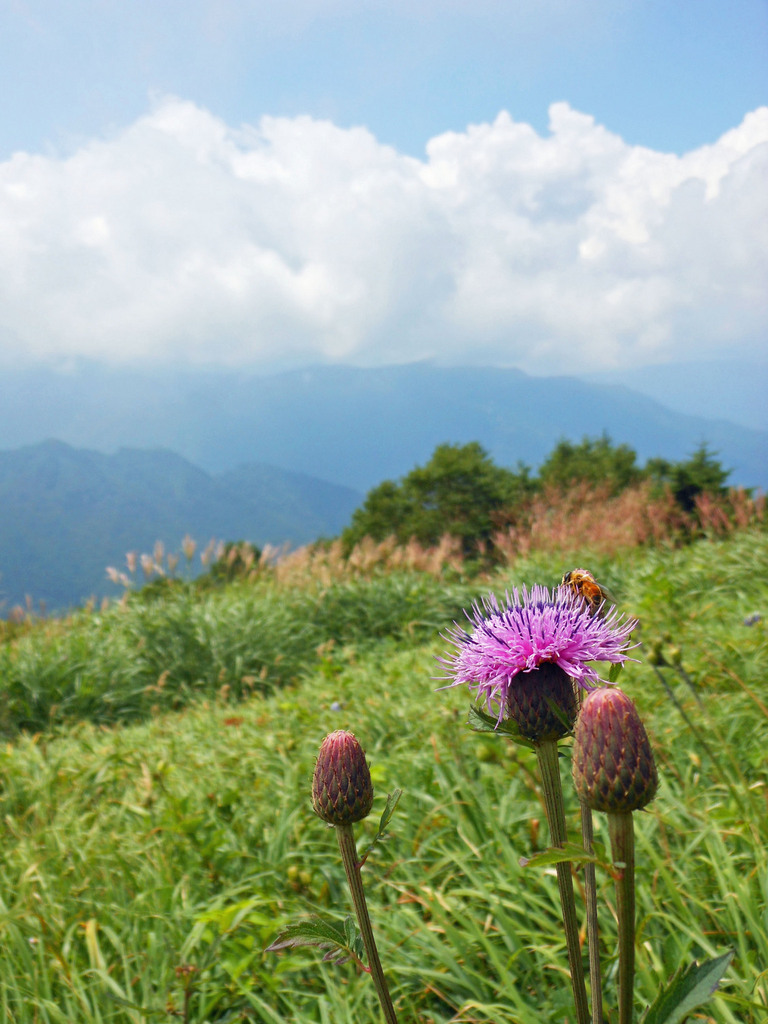 山の景色にあざみ、すてきな1枚ですね(*^^*) 自然って本当に美しい!!