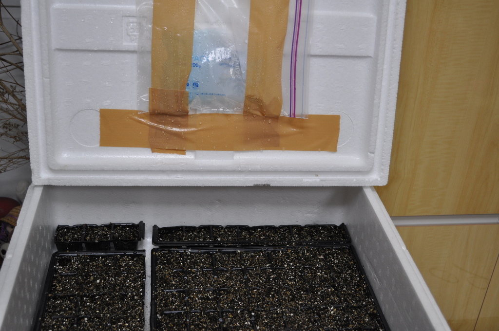 こういう努力があるからこそ、早くから花が咲くんですね!私も今年は早めに撒きましたが、1ポットだけなので冷蔵庫の野菜室で発芽処理しました^^;
