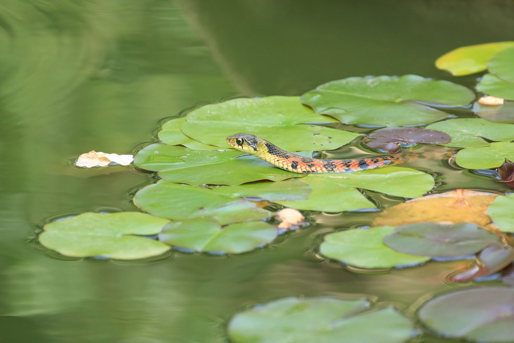 うちの小さな池、カエルは来てほしいけどこの方も付いてくるのでしょうか?!