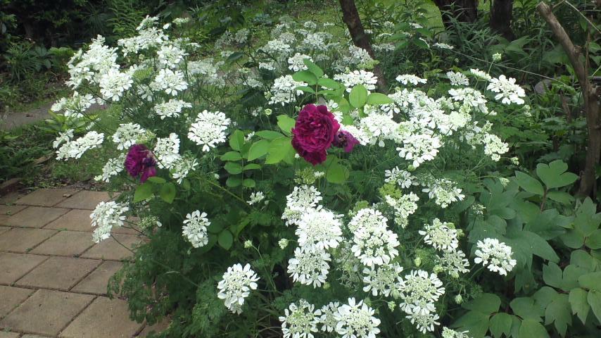 イングリッシュローズの、ウィリアムシェイクスピアと、オルラヤです。10月桜の株元に植えていますが、シェイクスピアは半日陰でも咲いてくれるので、嬉しいです。まだ2年目の小さい株ですが。。少し、オルラヤに埋もれ過ぎてますね(笑)