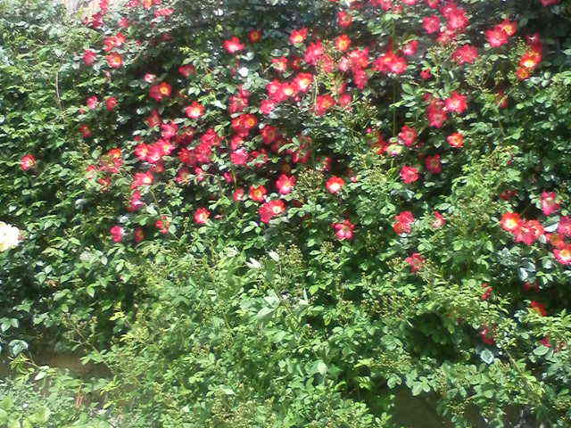 つるばらの、カクテルです。赤い一重の花が本当に綺麗です。挿し木から育てたのですが、びっくりするくらい巨大になりました(笑)ここでは、4月の中頃から他のバラより一足先に咲き始めるつるバラで、GW頃に満開になります。*携帯電話で撮影した写真なので、 画像が悪いですが、、スミマセン*