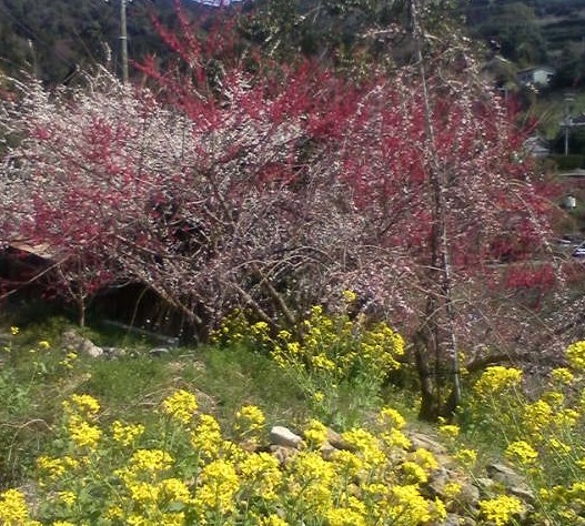 観賞用の梅と、菜の花です。まだ寒い2月頃に見ごろを迎えます。*携帯電話で撮影した写真なので、 画像が悪いですが、、スミマセン*