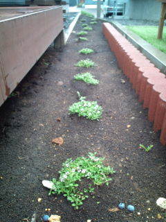ビスの本を参考にヒメイワダレソウピンクと白を植えました私が生まれて初めて土植えしたお花になります(*´д`*)