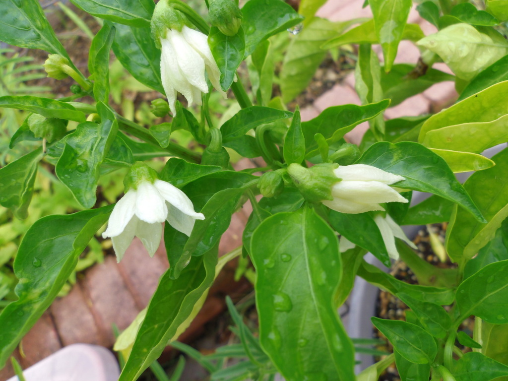 ひどい猛暑が一休みして、久しぶりに雨が降りました。ピーマンの花がまた咲きだしました。