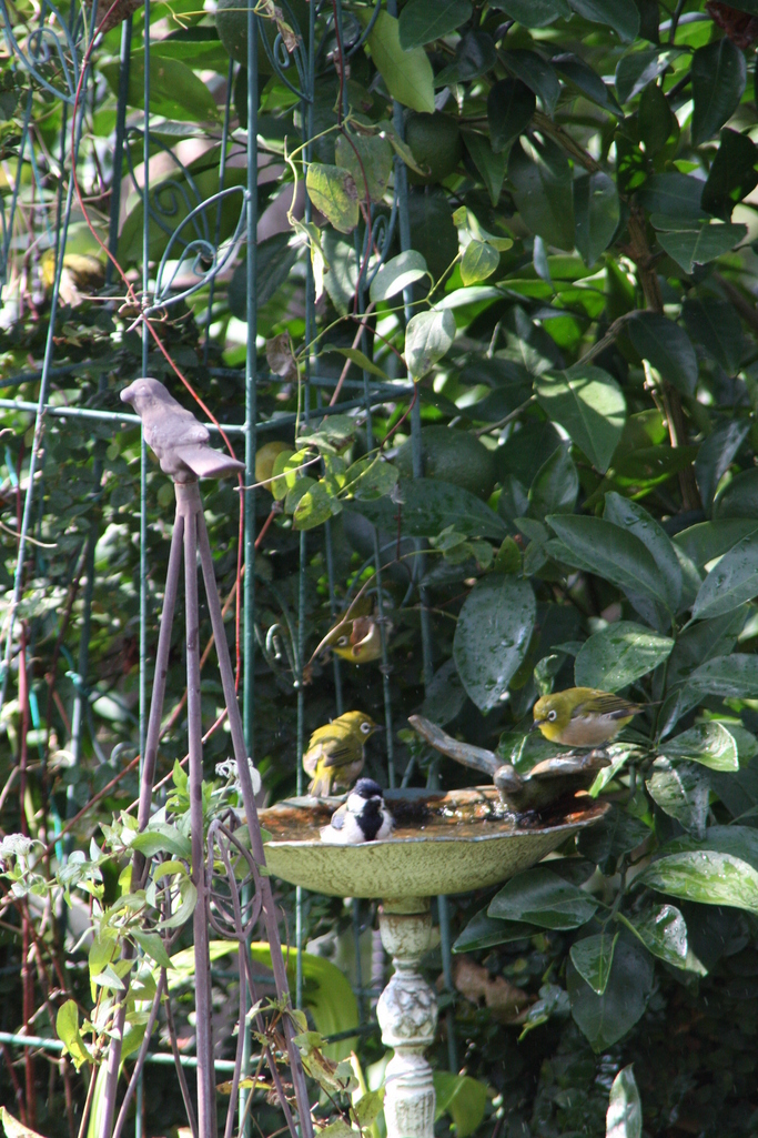 かわいい~!小鳥が戯れるバードバス憧れます~❤