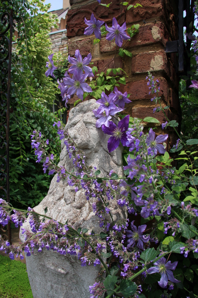 素敵な写真ばかりで、うっとりしています。特にこのクレマチス、いい色ですね。煉瓦をバックに素敵です。濃い色と淡い色が出るのでしょうか?煉瓦のてっぺんの模様が、いい感じですね。