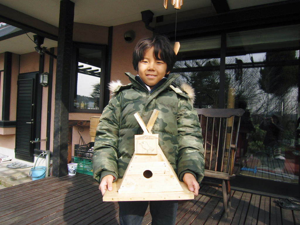 孫と巣箱作り