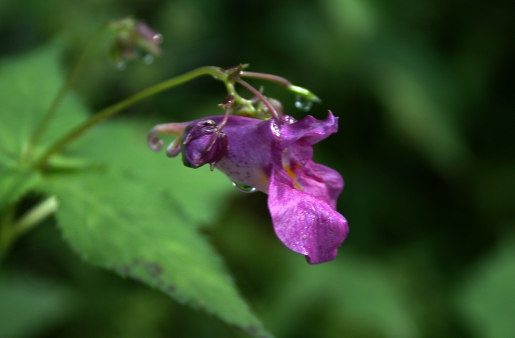 今朝クーチャンと散歩の途中で見つけた山野草たちをアップします。これは、ピンクのツリフネソウです。鳳仙花の仲間の野草です。