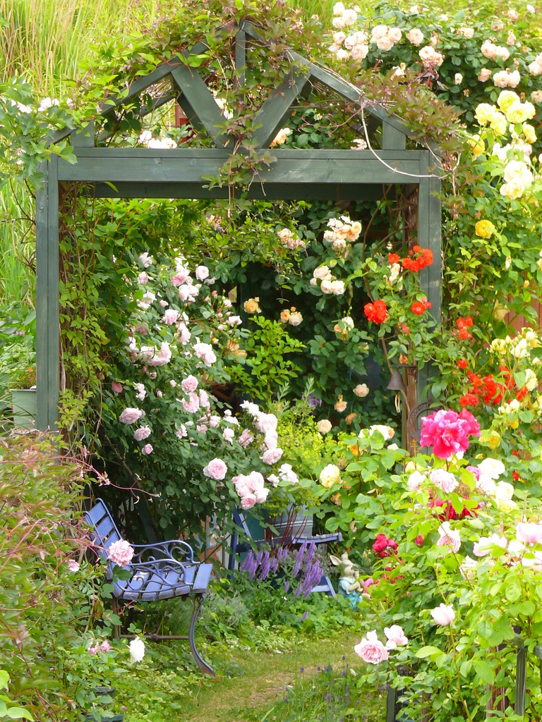 葉っぱの向こうに見える青いテーブルセット、ワクワク感がつのります^^