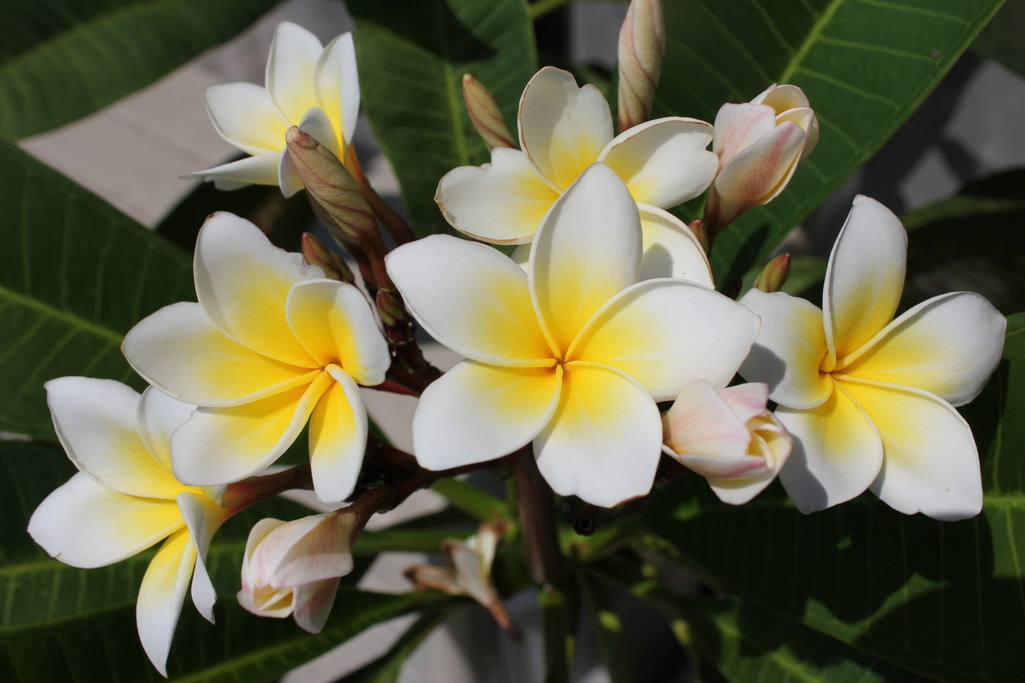 プルメリア!!私、この香りが大好きなんです。日本でも育つんですね^^ ベッドルームのコロンはいつもプルメリア、ここだけはバラの入り込む余地なしです。