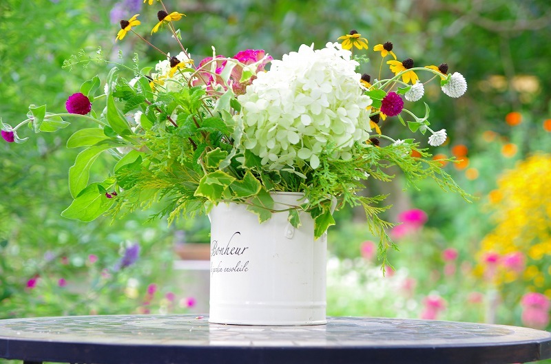 とっても素敵です~!!バックのお花たちが色鮮やかでさらに素敵なアレンジにしてくれていますね♪