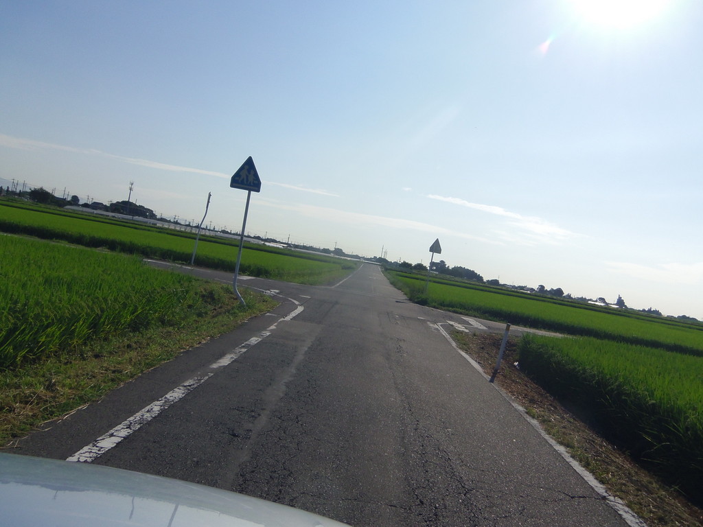 1か月ほど前から、田んぼを横切るこの道に変えました。ストレスが減った!でも運転しながら撮っちゃいけません。
