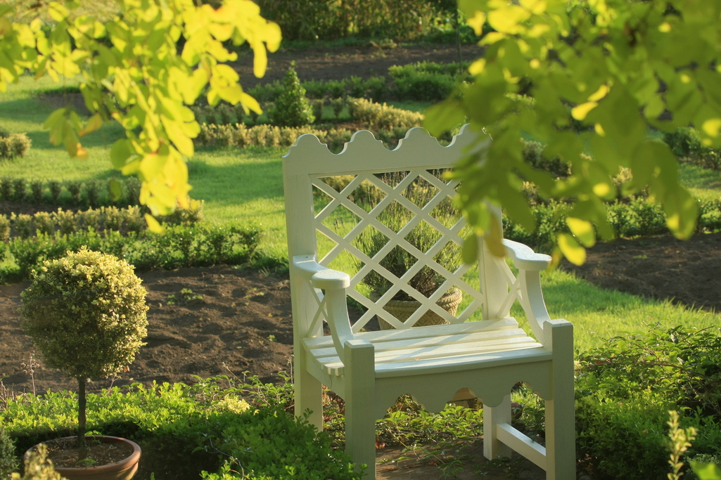 ライムグリーンと白い椅子、とてもマッチしていますね。