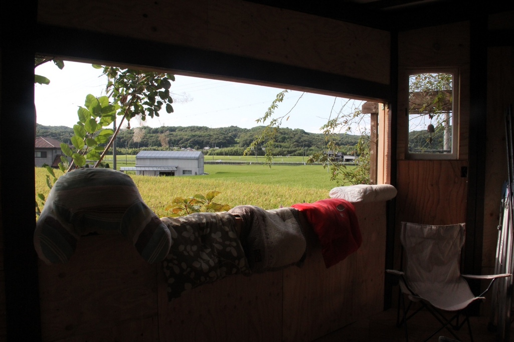 ログハウスの横にお部屋を作っている、パパさん。まだ、窓が入っていない開口部からは、のどかな田園風景が楽しめるお部屋。出来上がりが、楽しみ(^_-)